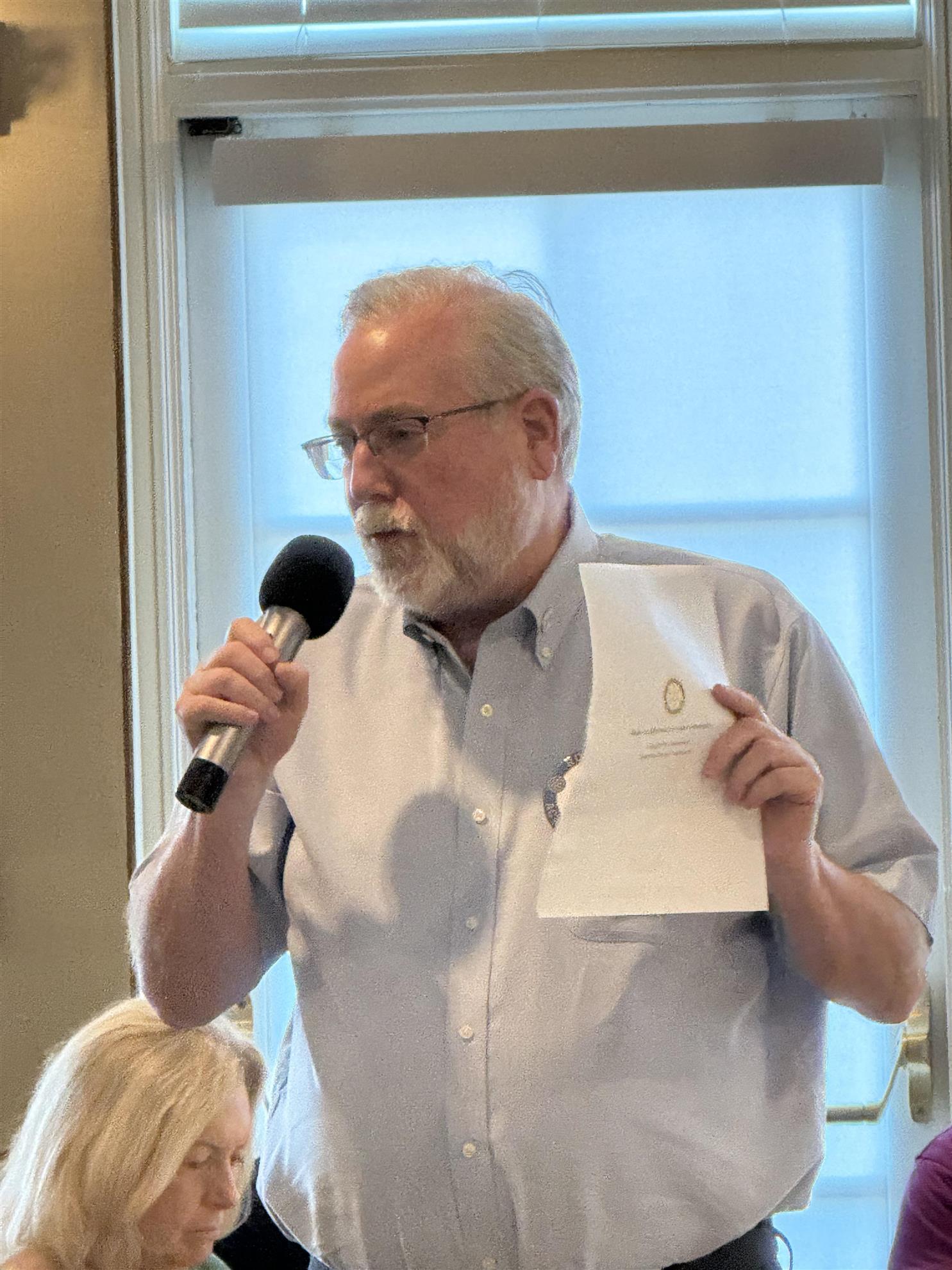 explaining just what it is that Land Surveyors do. Ron reminded us that without surveying, there would be no exploration, and also no boundaries. Land surveyors all have their niches, and Ron’s is in the area of smaller projects and parcel maps. For example, he determines a property’s boundary line, based on its legal description. (Remember, good boundaries make good neighbors!) Thanks for the Craft Talk, PP Ron!