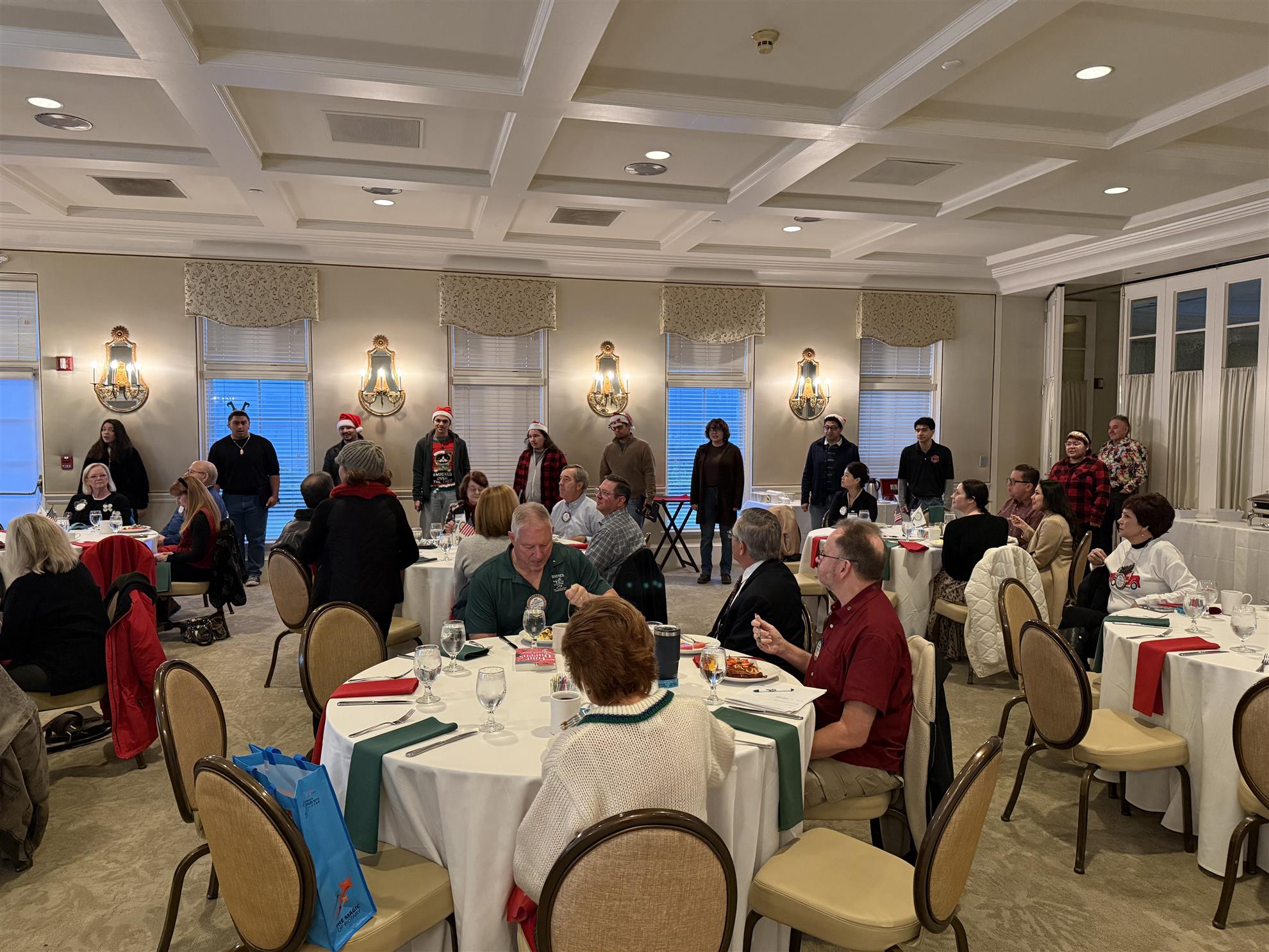 And then – the time had finally come. It started quietly as first – steadily building in intensity as one singer after another emerged from the hallway. The heavenly sound of Carol of the Bells rose to near fever pitch as the BC Chamber Singers entered the room. Each voice seemingly more powerful and melodic than the previous, until all 14 harmonized in unison – creating a true holiday feast for the ears. Make no mistake, Dr. Jennifer Garrett and her glorious choir were now in control of the room! Ron Nelms smiled and told me, “If you close your eyes, it sounds like they’re right here!” Uh, okay Ron. If you say so.