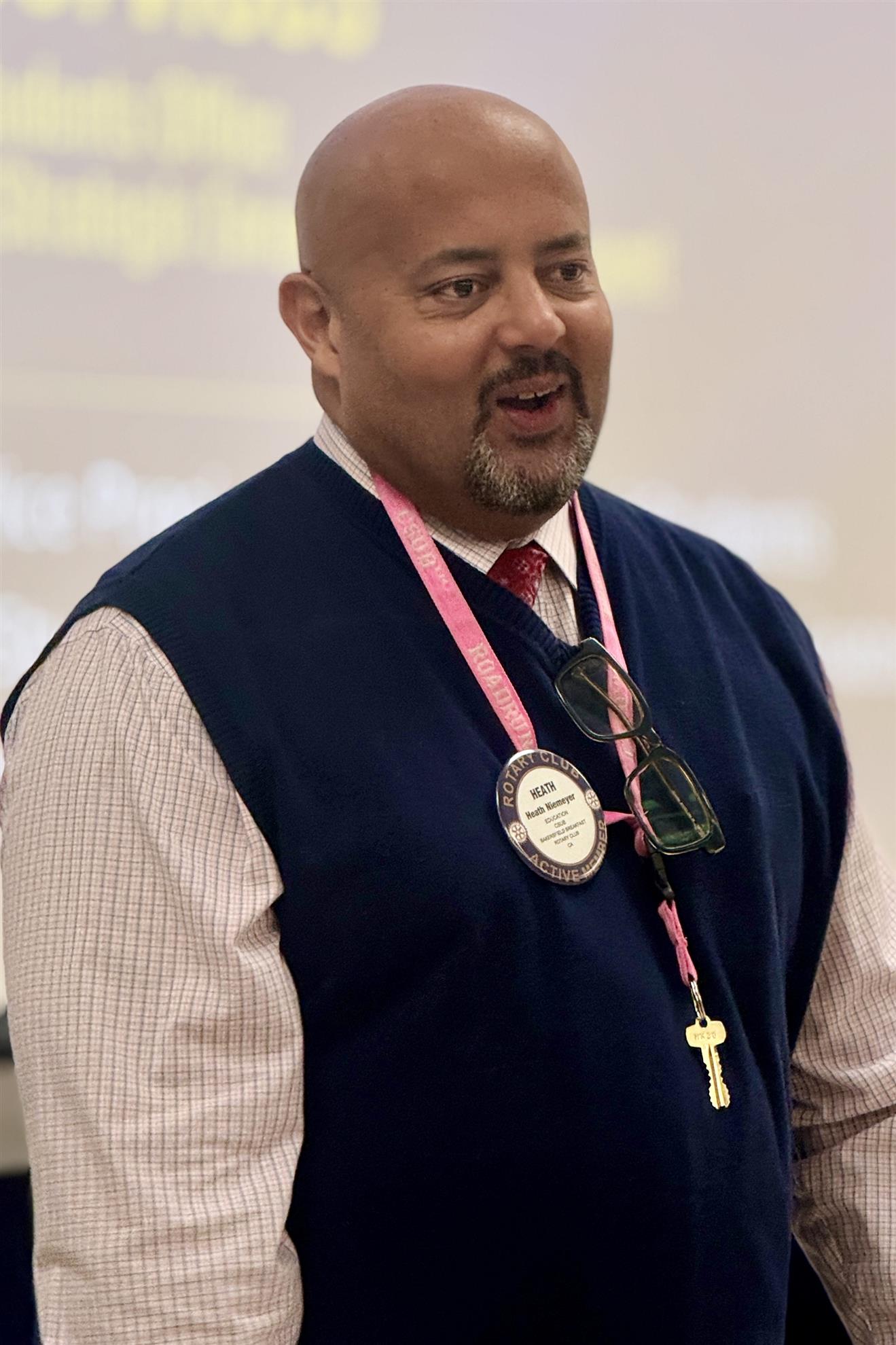 It was back-to-school morning for about 30 anxious Rotarians who all hoped they didn’t have a test they neglected to study for. We gathered in a classroom in the Ray Dezember Cener at CSUB. Thank you to our host Heath Niemeyer for arranging the off-site. Thanks to Jennifer Henry for arranging the monster-sized breakfast burritos from the Vault, pastries, coffee and juice.