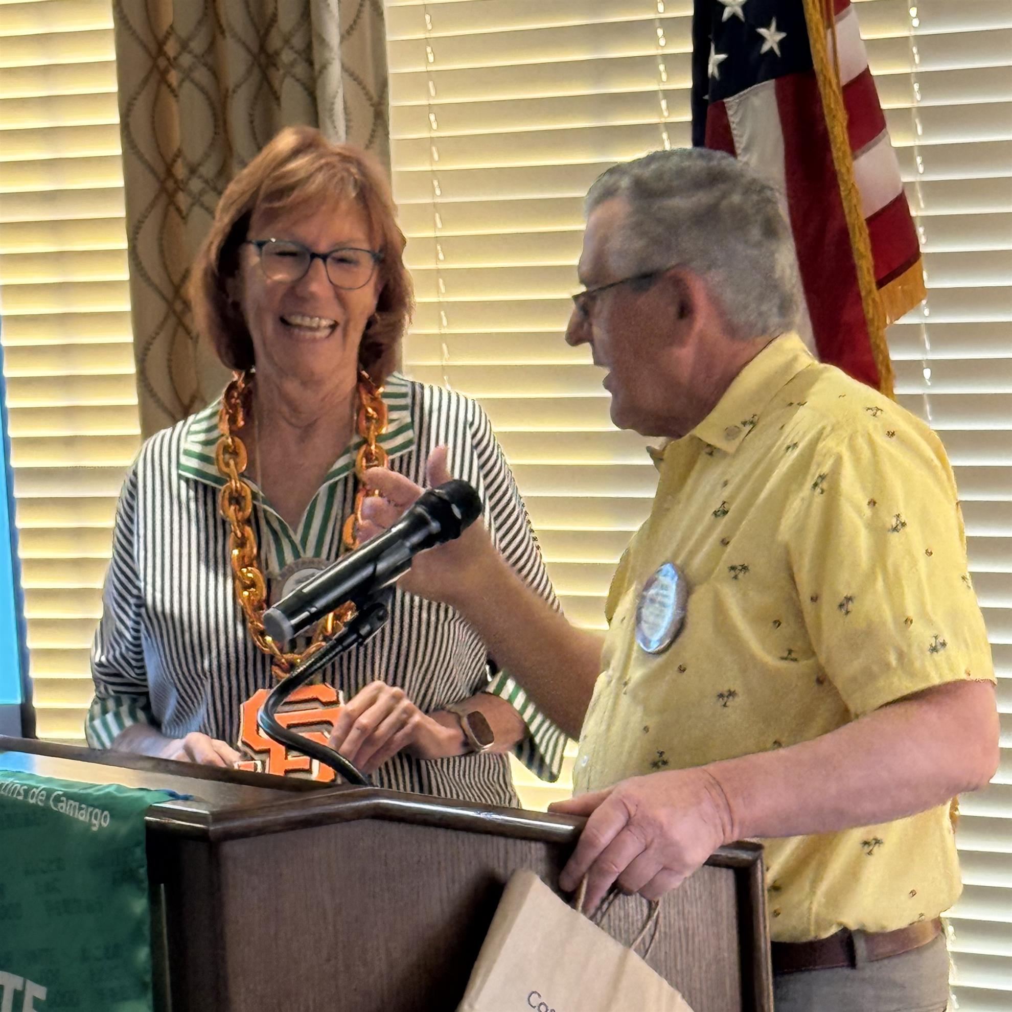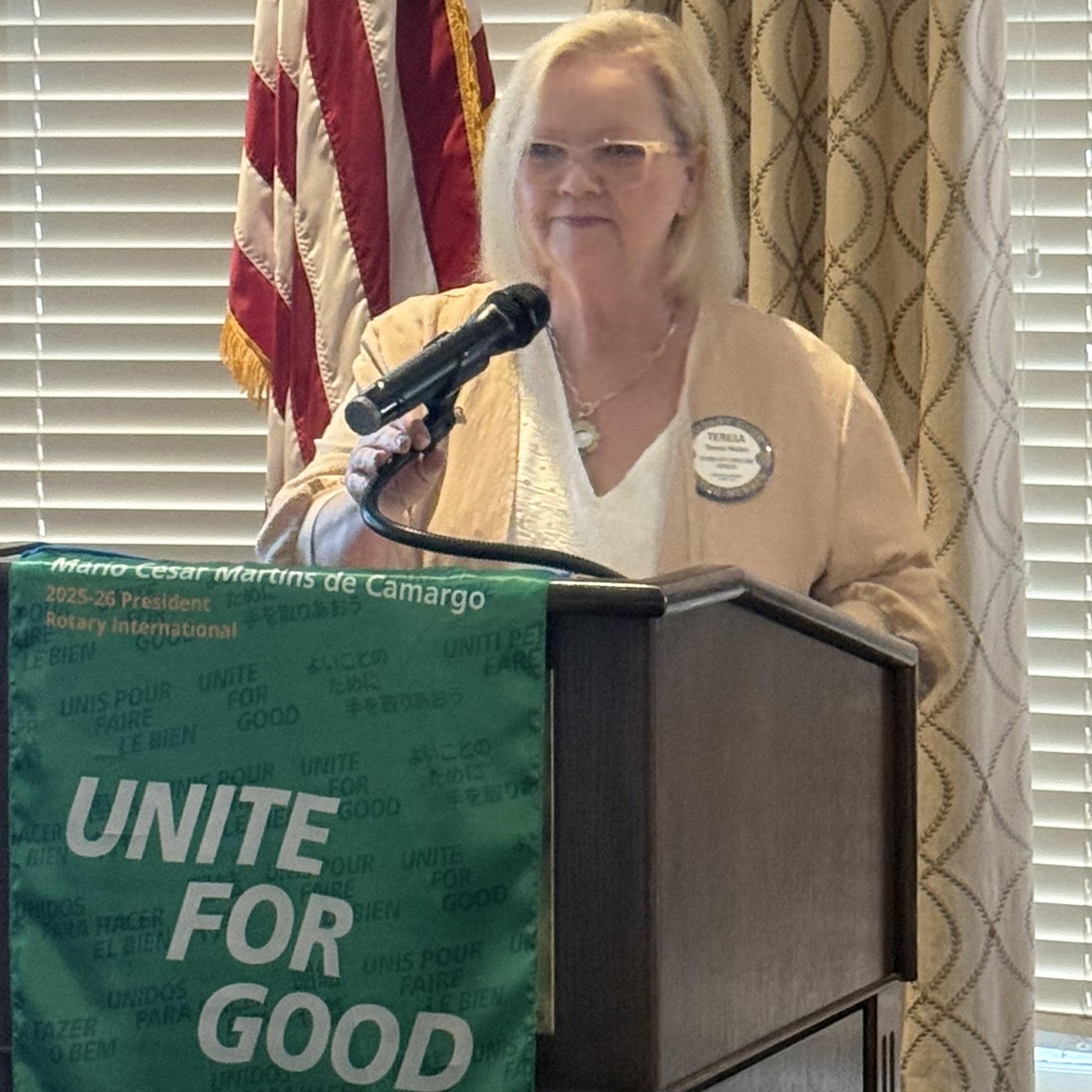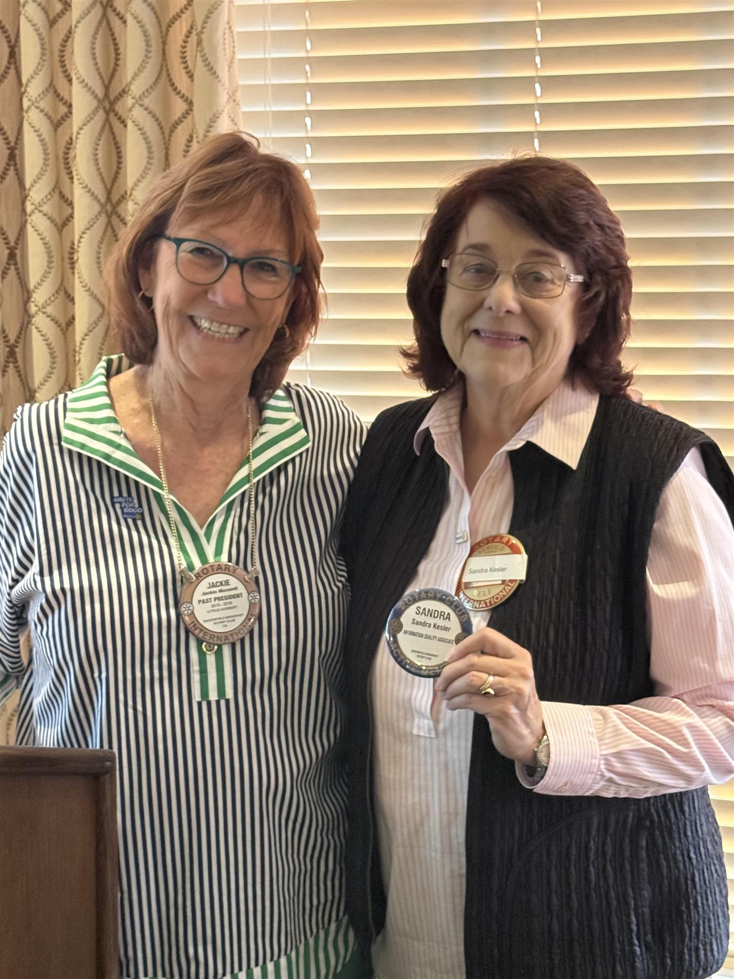 Sandy Kesler leveled up today—from red badge apprentice to full-fledged blue badge Rotarian! She’s completed every quest, slain every checklist dragon, and retired that red badge of shame to the archives where it belongs.
