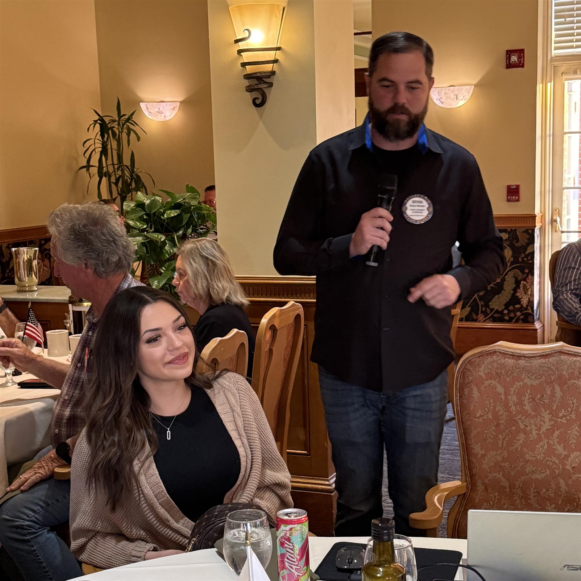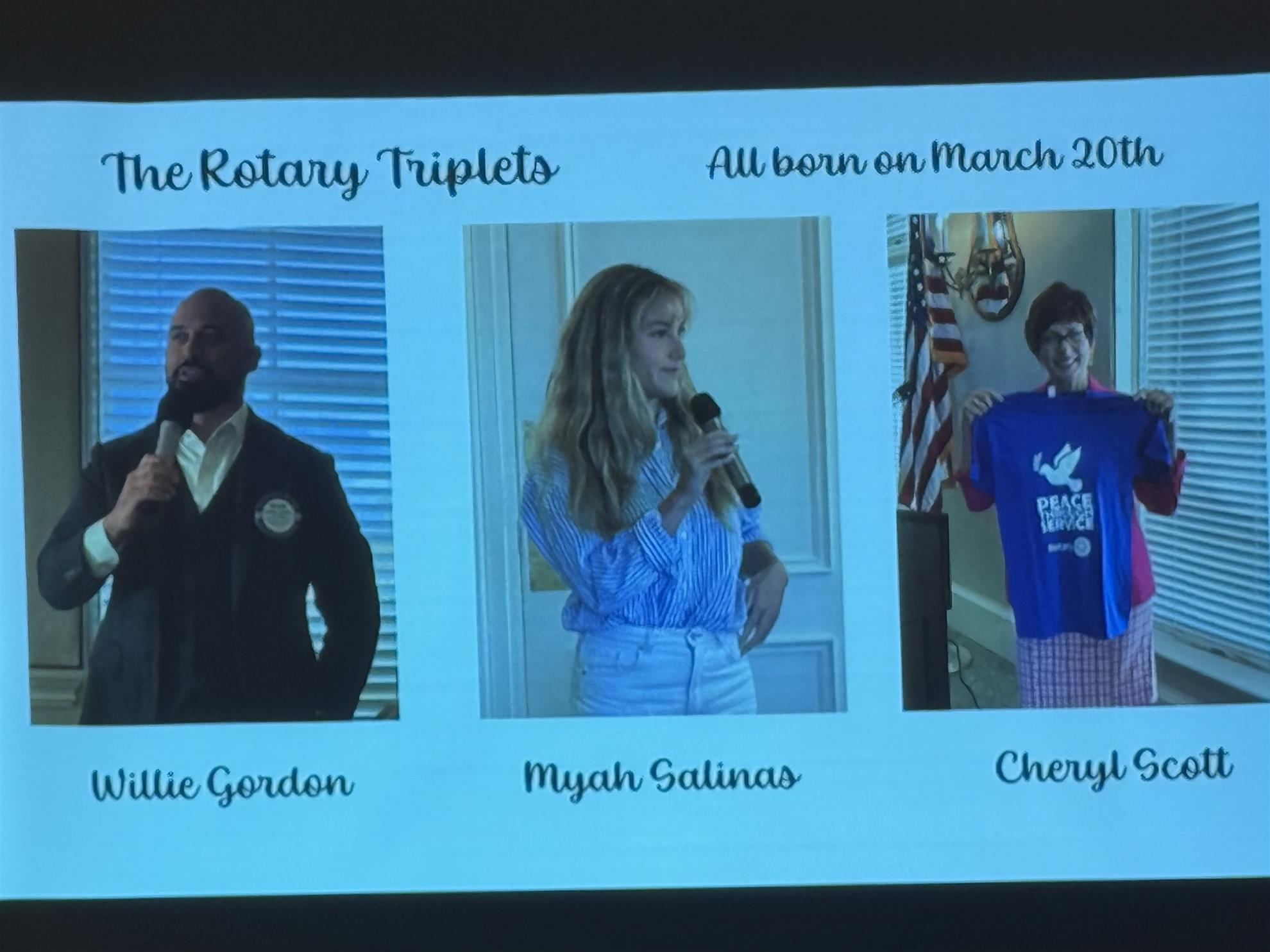 And finally, a round of applause for our club anniversaries: Myah Salinas and Tony Castiglione, celebrating their first year as Rotarians, and Erick Bautista, Myrna Arias, and Duncan Harris, who just hit the four-year mark. Thank you all for your service and the joy you bring to our club! 💙💛
