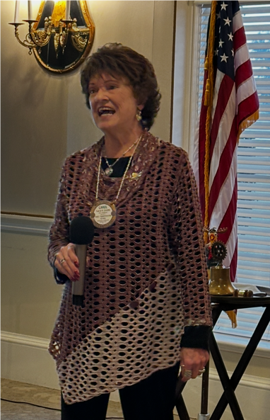 KAREN BONANNO then led us in the Flag Salute with poise and purpose, and CAROL E. SMITH lifted spirits as she guided us in a rousing rendition of “God Bless America.” Between patriotism and prayer, we were ready to seize the day — or at least our next cup of coffee.